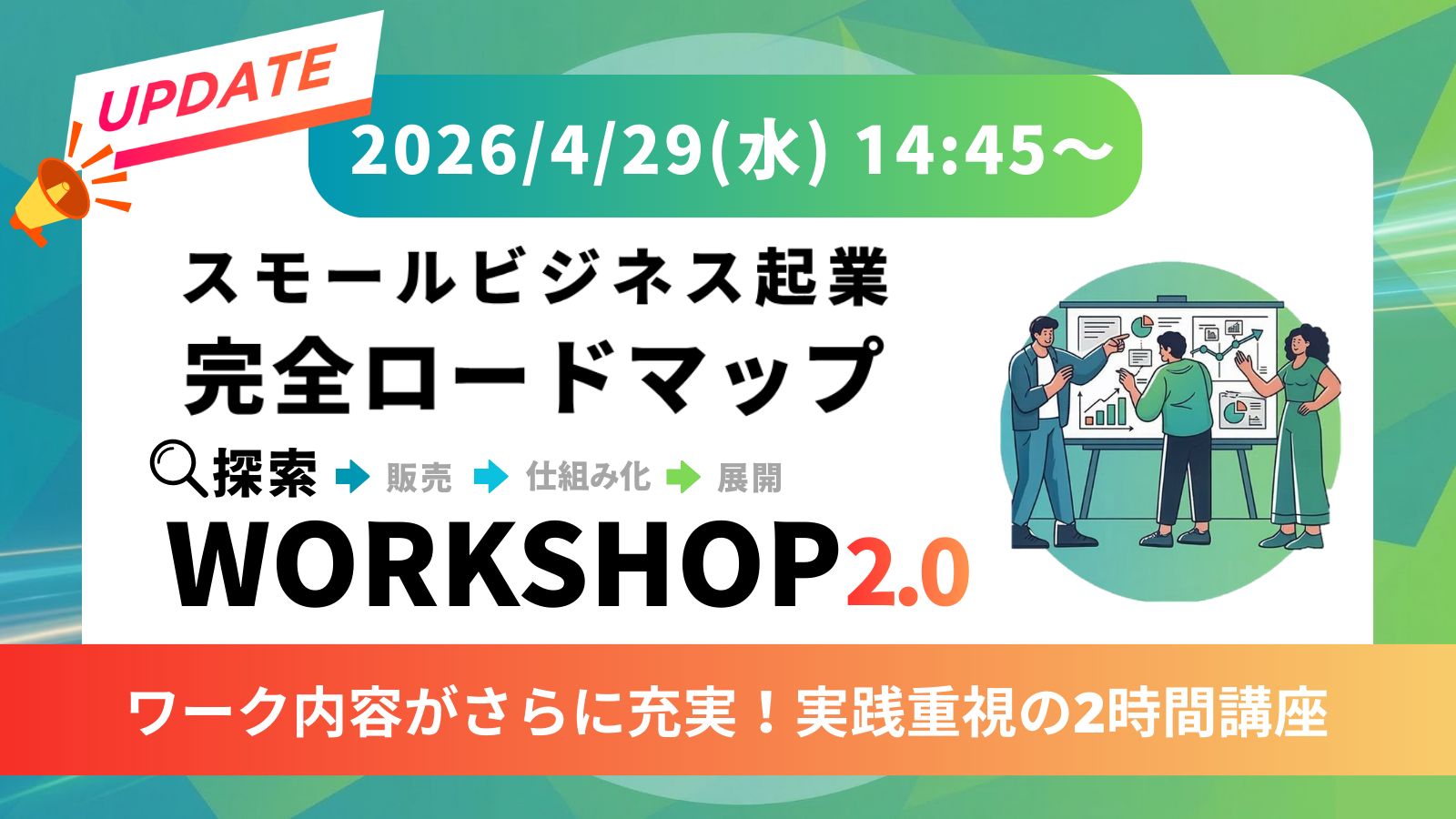 【ご好評につき再開催!】「スモールビジネス起業完全ロードマップ」を体感せよ!あなたの取り組むビジネスを決める、探索の2時間ワークショップ