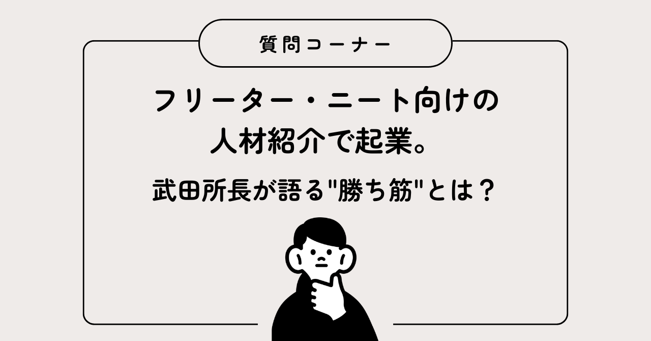 【質問コーナー】フリーター・ニート向けの人材紹介で起業。武田所長が語る"勝ち筋"とは?