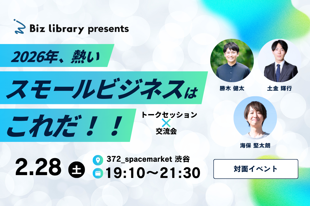 【2/28(土)対面イベント】2026年、熱いスモールビジネスはこれだ!(ゲスト:勝木 健太氏、土金 輝行氏)
