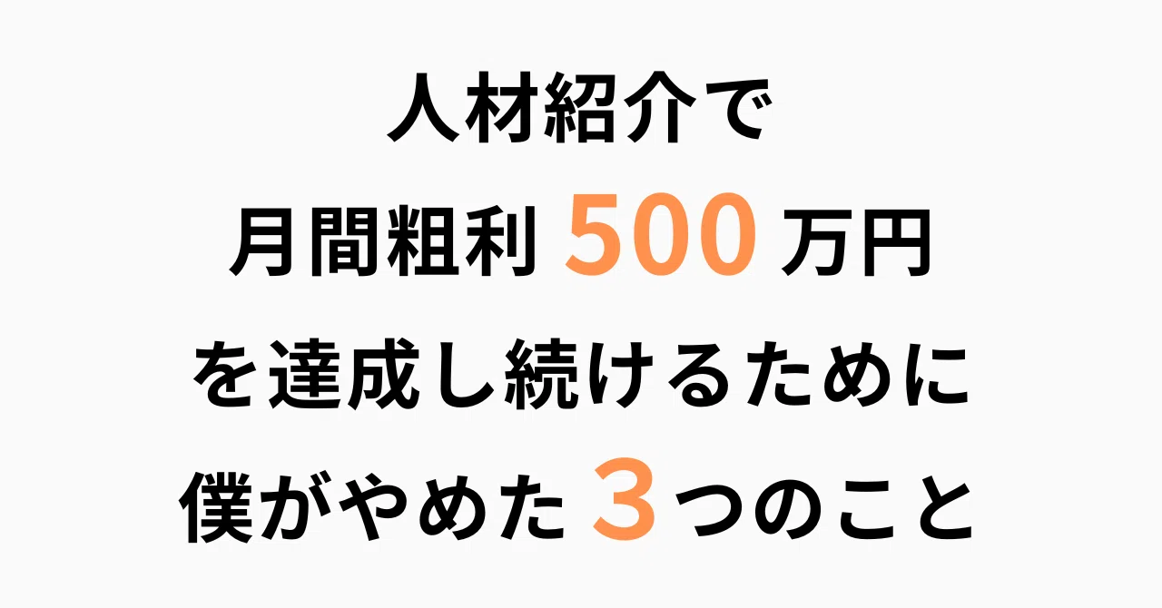 人材紹介で月間粗利500万円を達成し続けるために、僕がやめた3つのこと