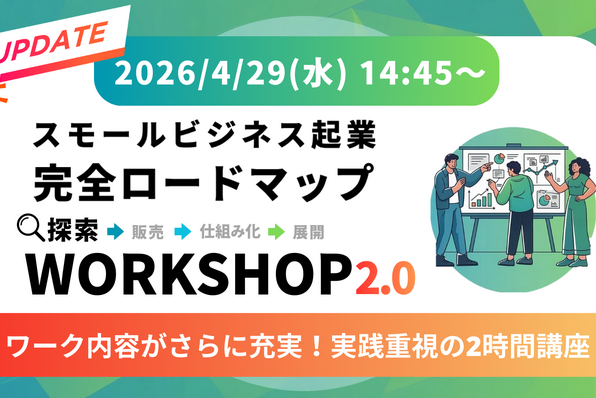 【ご好評につき再開催!】「スモールビジネス起業完全ロードマップ」を体感せよ!あなたの取り組むビジネスを決める、探索の2時間ワークショップ